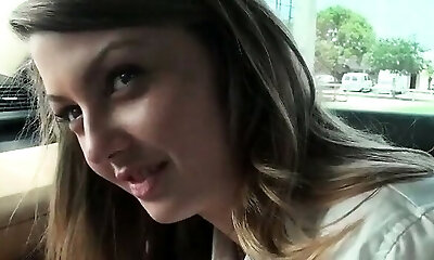Slutty chick Babe Wish gives a blowjob in the car and gets fucked hard