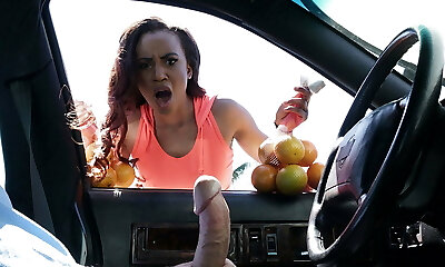 Monstrous breasted nymph driver Natasha Nice picks up one stranger in the street