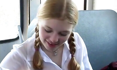 Pretty 18yearold redheaded cutie, Ashlyn Rae, dressed in a conservative schoolgirls uniform, briefly has