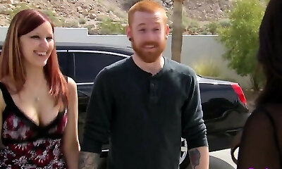 Randy pale busty redhead joins in with a couple