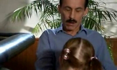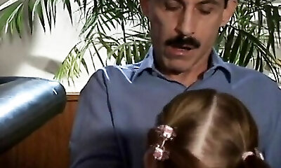 Dirty older man gets his immense cock sucked by hot babysitter then fucks